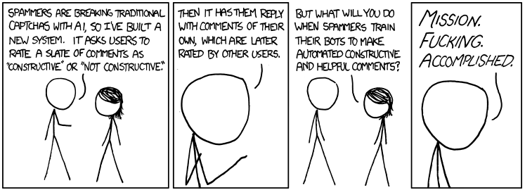 Sembra fantascienza. E probabilmente è fantascienza, nonostante qualcosa del genere sia sostenuto da correnti di pensiero come quella della “singolarità tecnologica”. E d’altra parte è difficile non provare un certo disagio quando si scopre che, ormai, i robot non hanno più bisogno dell’uomo per imparare cosa devono o non devono fare. Lo imparano da soli. Come spiega un video di CGPGrey (ripreso anche dal sito Aeon), “non dovete pensare a un programmatore che sviluppa bot, dovete pensare a un programmatore che sviluppa un bot che insegna a se stesso a fare cose che il programmatore non sarebbe mai in grado di spiegargli”. Il meccanismo è sempre lo stesso: tentativi ed errori. Basta (per modo di dire) mostrare al bot un certo numero di cose che deve fare, mostrargli tot cose fatte nella maniera giusta e lui riuscirà a capire qual è il modo giusto di portare a termine i suoi compiti.